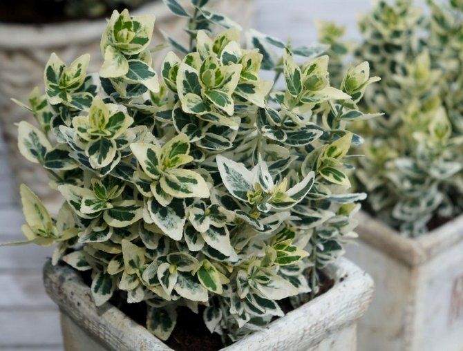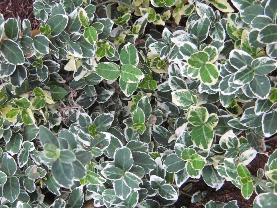 - Листва: Мелкие, овальные листья с ярко-зеленой серединой и кремово-белой каймой. Осенью и зимой листья могут приобретать розоватый оттенок, добавляя саду красок в холодное время года.
