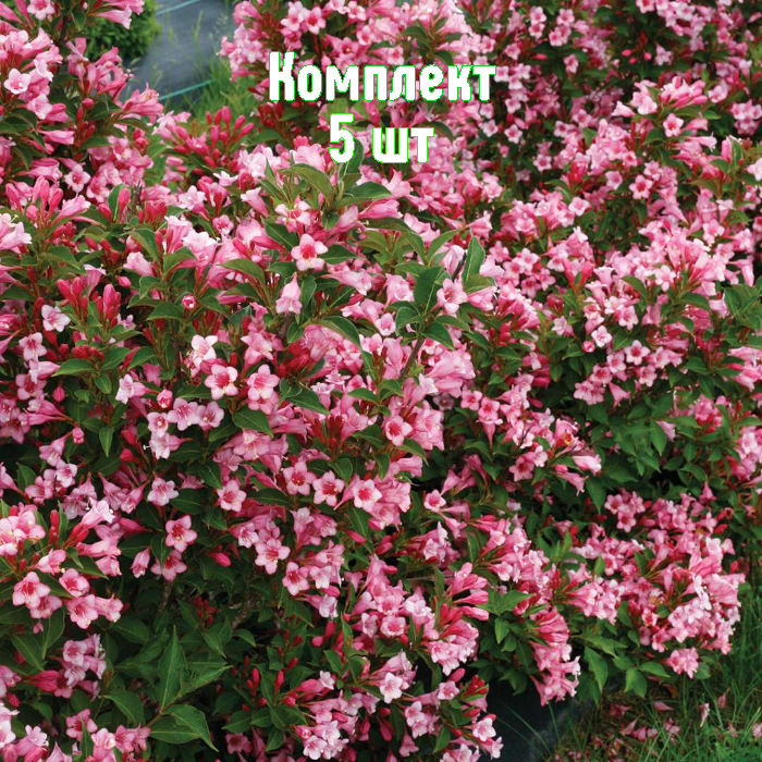 Комплект из 5 саженцев вейгелы садовой Nana Variegata — компактный декоративный кустарник с эффектной листовой окраской и обильным цветением. Отличный выбор для небольших участков, рокариев и бордюров.