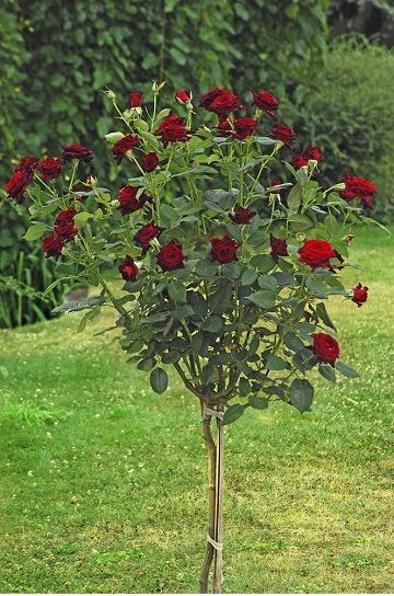 Добавьте в свой сад нотку роскоши и загадочности с помощью штамбовой розы Блэк Баккара!